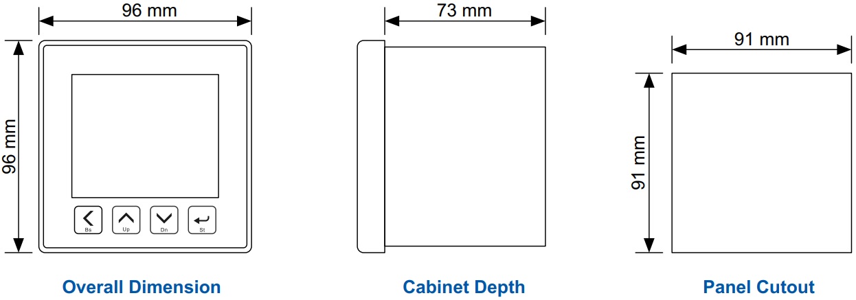 - Flush-mount LCD Power Analyzer, 96x96x73 mm