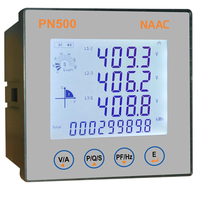 Equipped with a clear segmented LCD display, the PN500 provides immediate and easily readable data. Its powerful data acquisition and processing functions allow for real-time insights into power consumption and quality. A key strength of the PN500 lies in its communication capabilities, featuring an RS485 interface and supporting the widely adopted Modbus-RTU protocol. This enables seamless integration into existing SCADA systems, energy management platforms, and building automation networks, facilitating remote monitoring, control, and data logging
