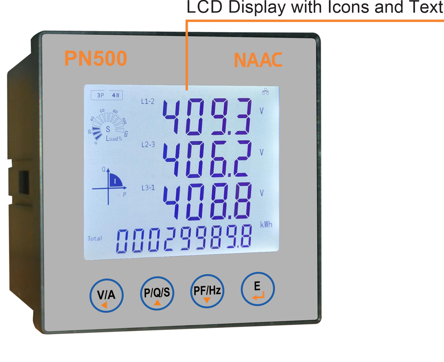 The Series PN500 Multi Function Digital Power Analyzer is an Advanced Three-Phase LCD Smart KWH Meter engineered for comprehensive power monitoring and management in diverse industrial and commercial applications. This robust device excels in accurately measuring a wide array of electrical parameters, including phase and line voltages, three-phase currents, active, reactive, and apparent power (both split-phase and total), power factor, and frequency.